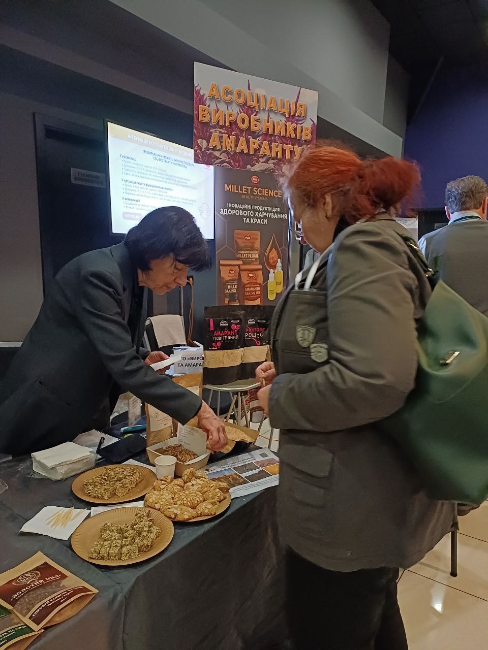 Стенди Асоціації виробників амаранту та Агрофірми «Поле» протягом всього часу роботи конференції привертали велику увагу учасників заходу. Ми відмічаємо, що інтерес до продуктів амаранту неухильно зростає. Одні виробники розповідають про свій досвід його використання, іншіі бажають спробувати уперше.
